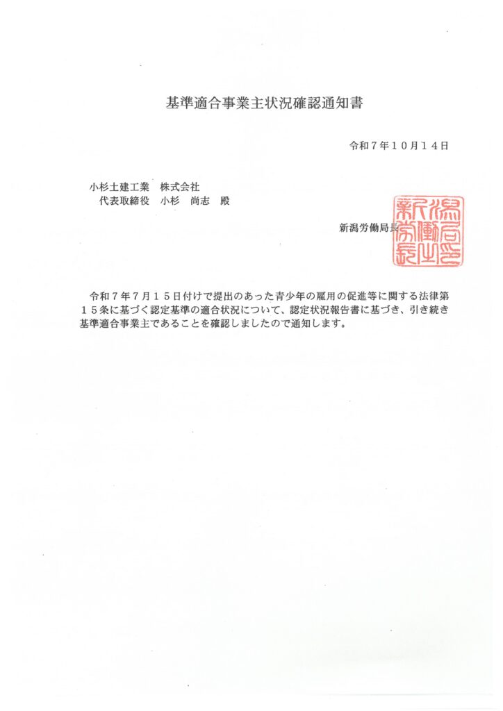 既に認定をいただいている【ユースエール認定】の認定更新を行い、新潟労働局様より認定を引き続きいただきましたので、ご報告いたします。